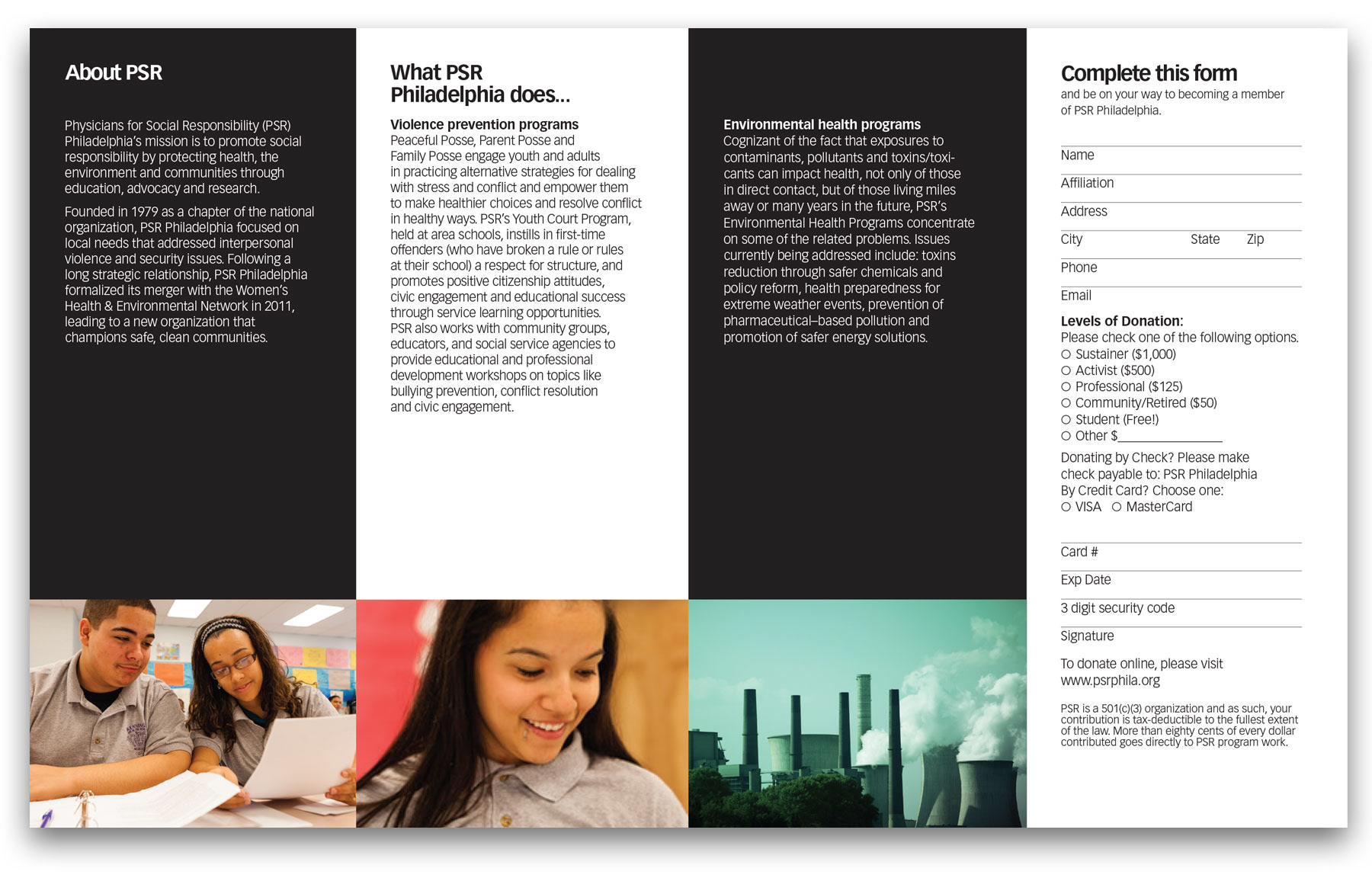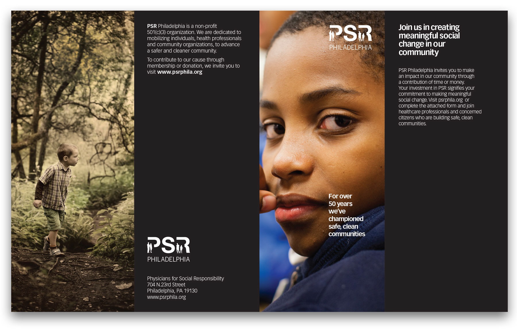 Brochure and branding for Philadelphia Physicians for Social Responsibility.