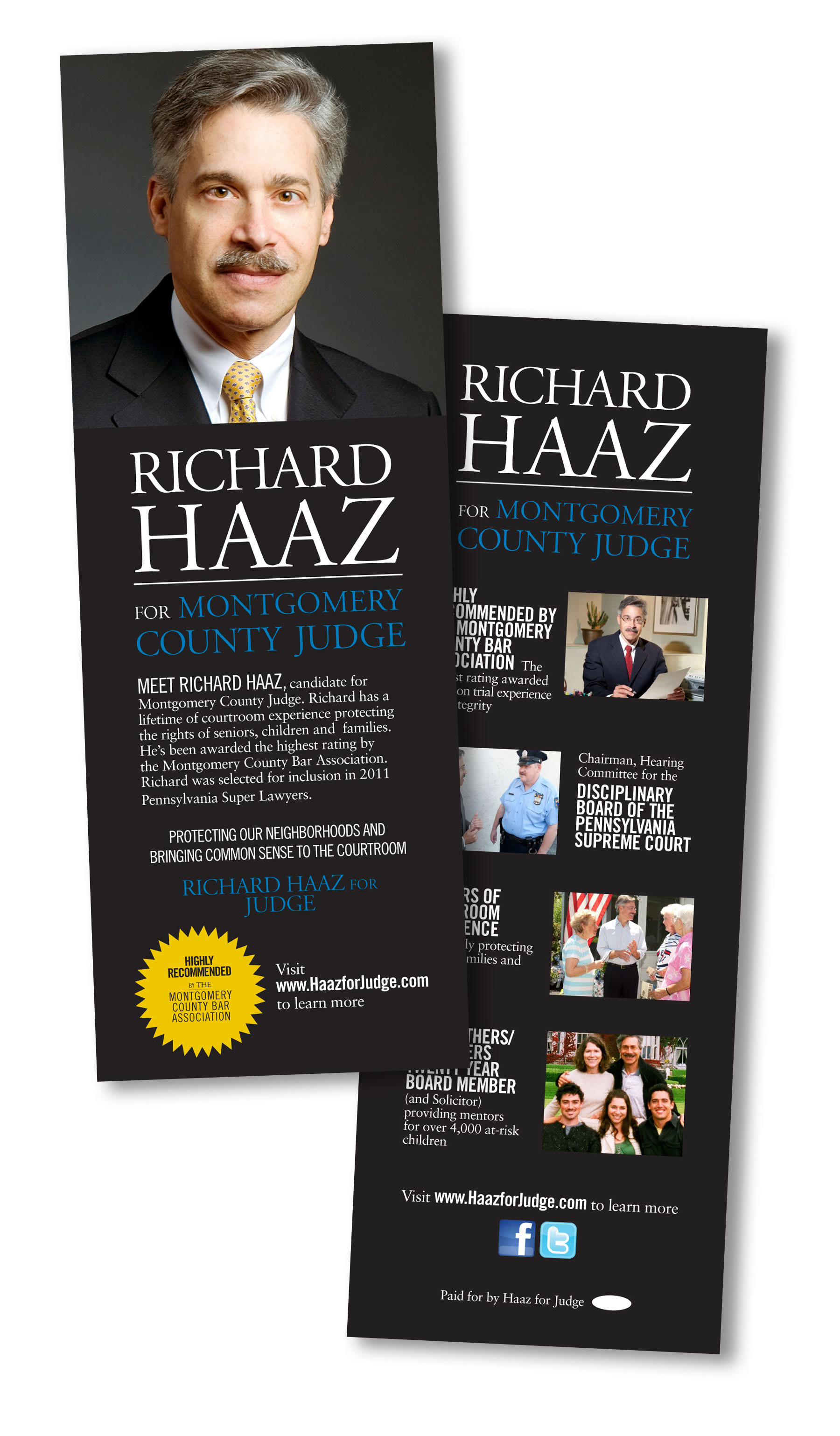 Walk card for Richard Haaz for Montgomery County (PA) judge campaign.